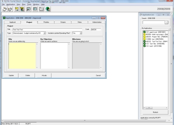 Application developed for the Econonic Development Unit of Norfolk County Council for the production of their annual Operating Plan. The software allows project managers to track applications, measure performance against objectives and provide key management information as well as producing the actual operating plan itself.