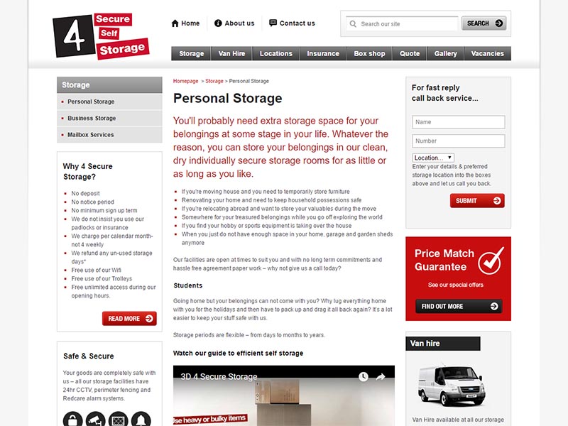 4 Secure Self Storage opened in June 2003 as a container storage facility in Thetford, offering businesses and householders additional, flexible storage space. Working closely with the client, Empresa was able to deliver a content managed web solution where strategic elements of the web solution are editable.