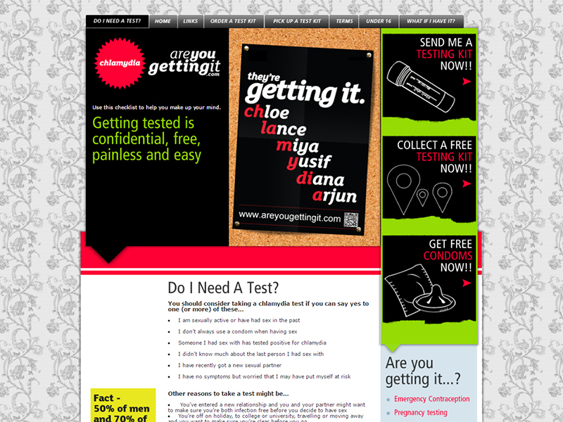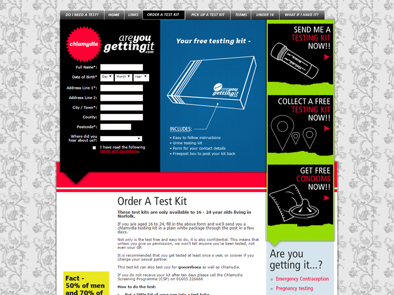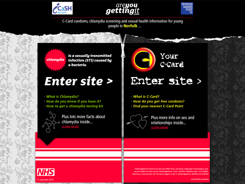 Our work began with the Gt Yarmouth and Waveney Primary Care Trust and their c-card campaign to provide sexual health information for young people in Norfolk. This then led to the development of the areyougettingit.com website - now managed and delivered by Terrence Higgins Trust working in partnership with Cambridgeshire Community Services NHS Trust.