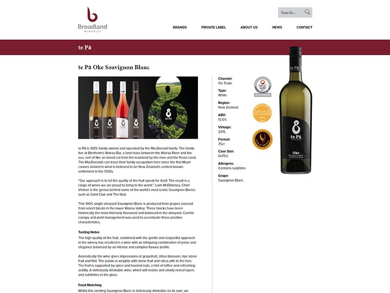 Empresa has a long standing relationship with Broadland Wineries who recently requested an update to their website. Broadland Wineries provided us with their own new marketing material, and the website has sympathetically followed their requirements to ensure consistency between the site and their own paper versions of marketing materials.