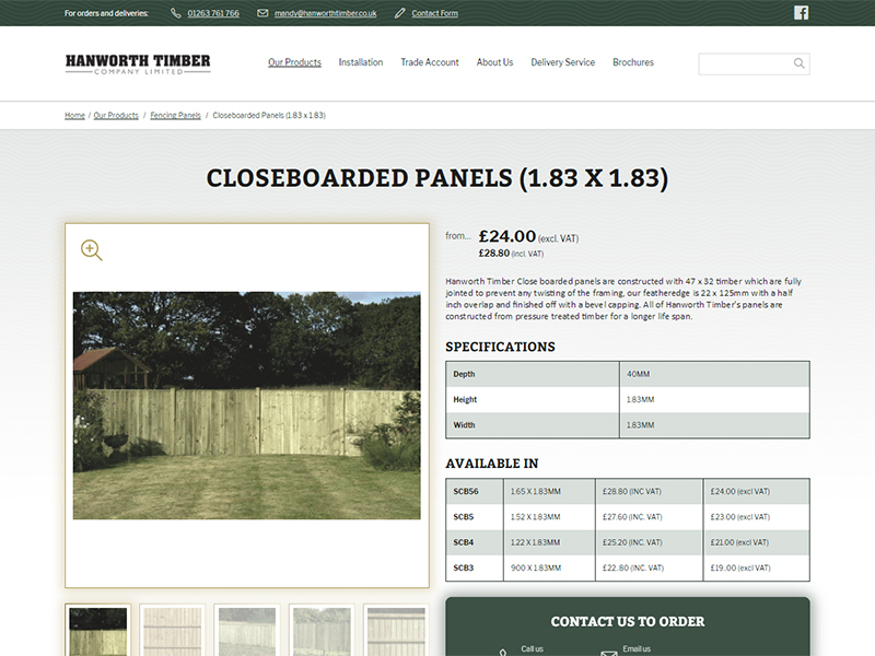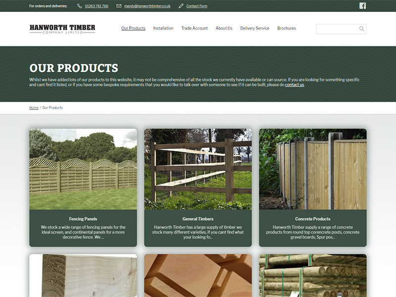 Hanworth Timber contacted us to develop them a company website to include an online product catalogue. The website needed to be tailored to promote the company’s products and services to the public but also local builders, gardeners and landscape developers. The company also wanted the flexibility to be able to add and update information on their products and installation projects as and when they required.