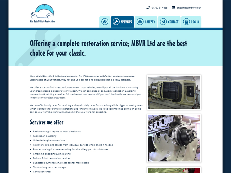 A new website and bespoke restoration tracking system was developed for our client Mid Beds Vehicle Restoration. The main purpose of their business is to provide general servicing to full mechanical vehicle rebuilds.