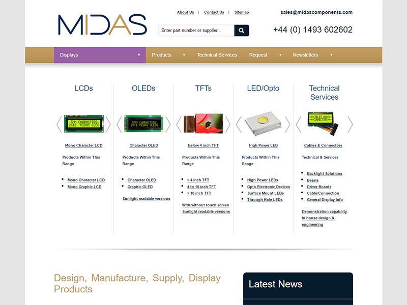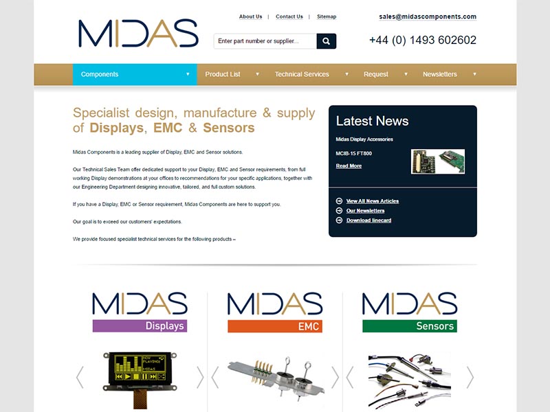 Empresa developed a number of websites for the Great Yarmouth based Midas Components company each with a wide variety of CMS features to allow them to promote the different elements of their electronic components business.