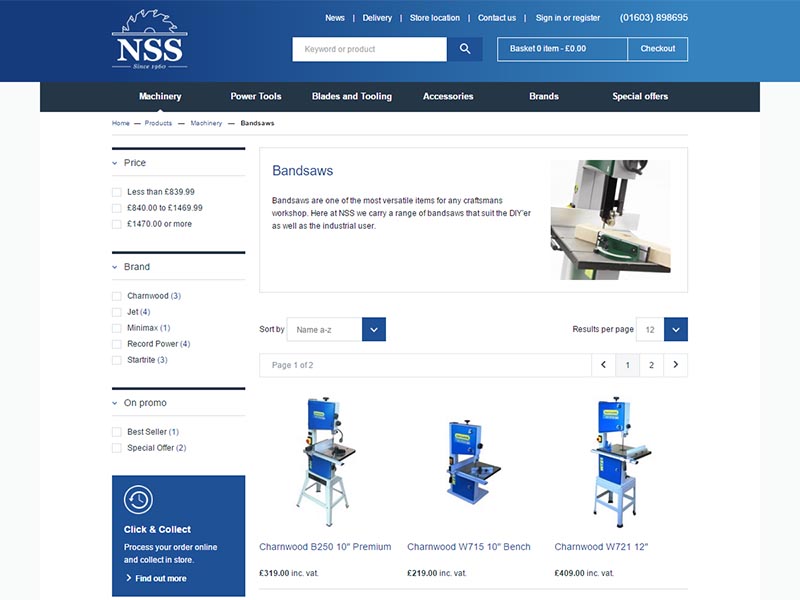 Full order tracking allows staff at Norfolk Saw Services to view and update orders, as well as sending automatic invoices and reporting on the payment status of orders. In addition, a click and collect function allows their customers to purchase on-line, and collect their products from the shop on Whiffler Road.
