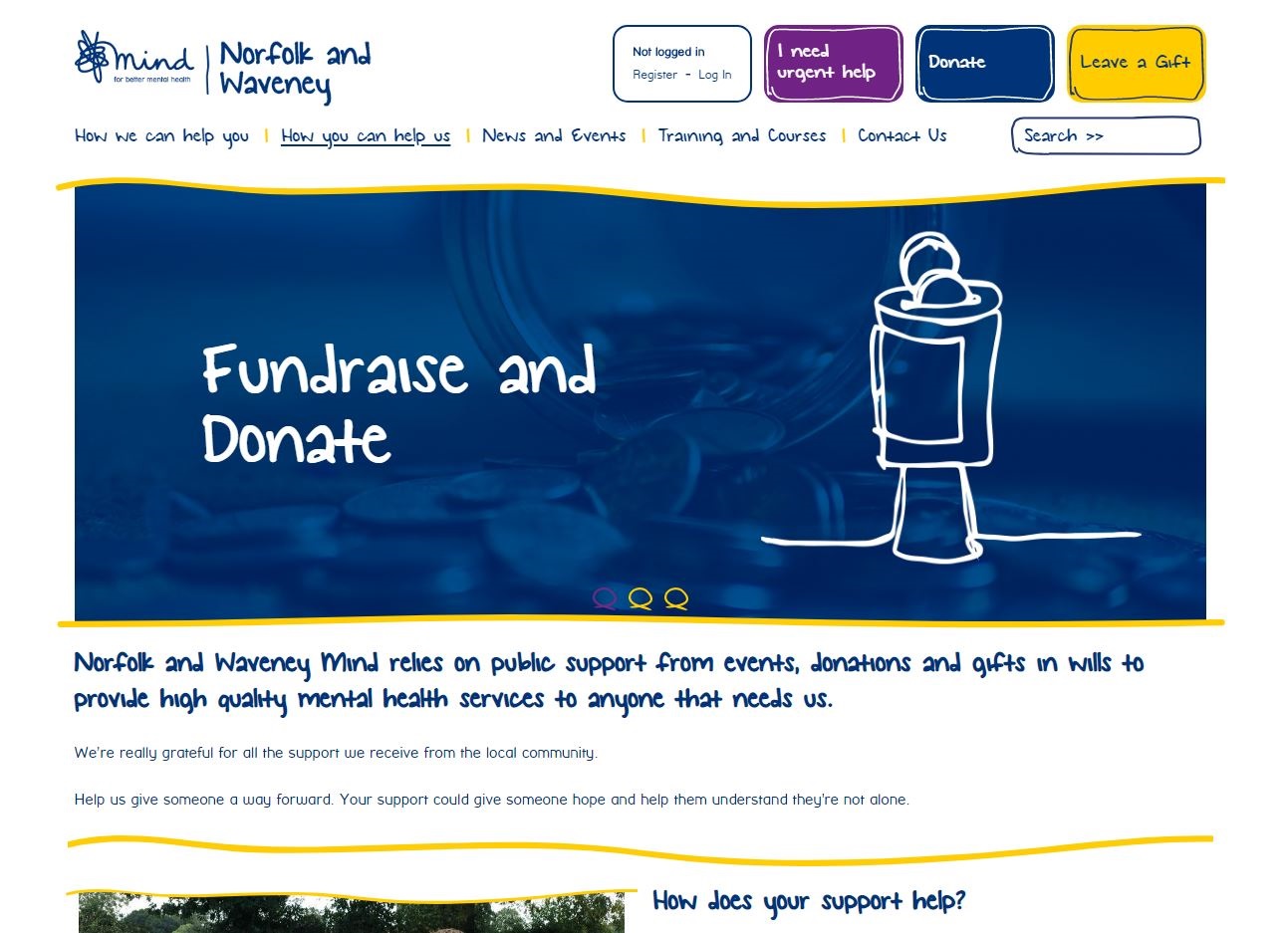 The design for the site was provided to us and our development team got to work on implementing it to bring the customer's vision to life. The bespoke solution provides the team at Norfolk and Waveney Mind the ability to have full control of the content and how it appears on the page. They can update it whenever they like with easy-to-use CMS tools and they can add text, pictures and even additional pages.