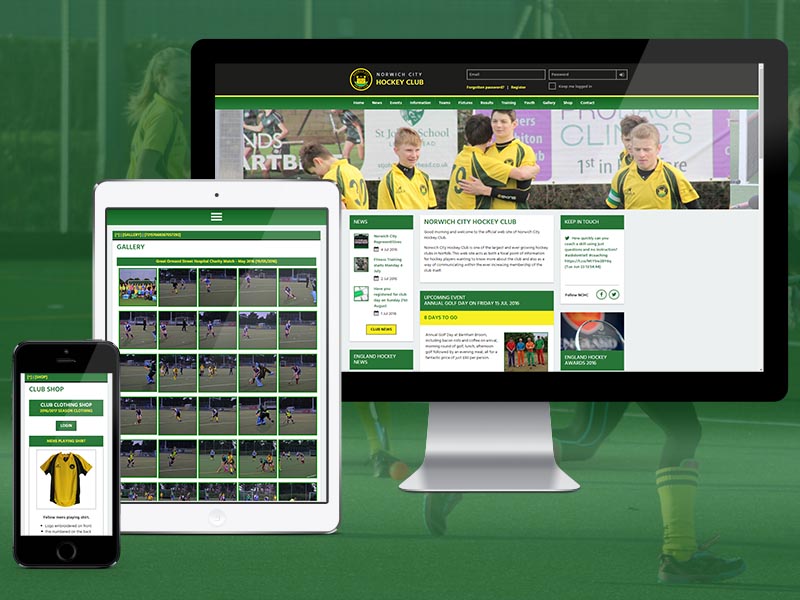 Norwich City Hockey Club's criteria was to maintain the same level of content, functionality and user experience and so continue to encourage interaction with players, club members and those looking to get involved with hockey in Norwich whilst incorporating the ability to be visually responsive so that members could access the website easily on their mobile devices, tablets or desktop without compromising on data access, all on a tight budget.