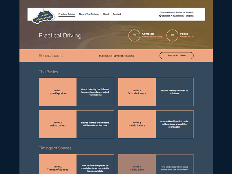 Online practical driving tuition through video tutorials. An easily accessible way to assist with passing first time, and to becoming a safer and more confident driver.